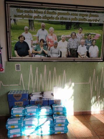 - Litros de leite, fraldas, máscaras e álcool gel 70% para o Asilo Betânia , atendendo 75 idosos;