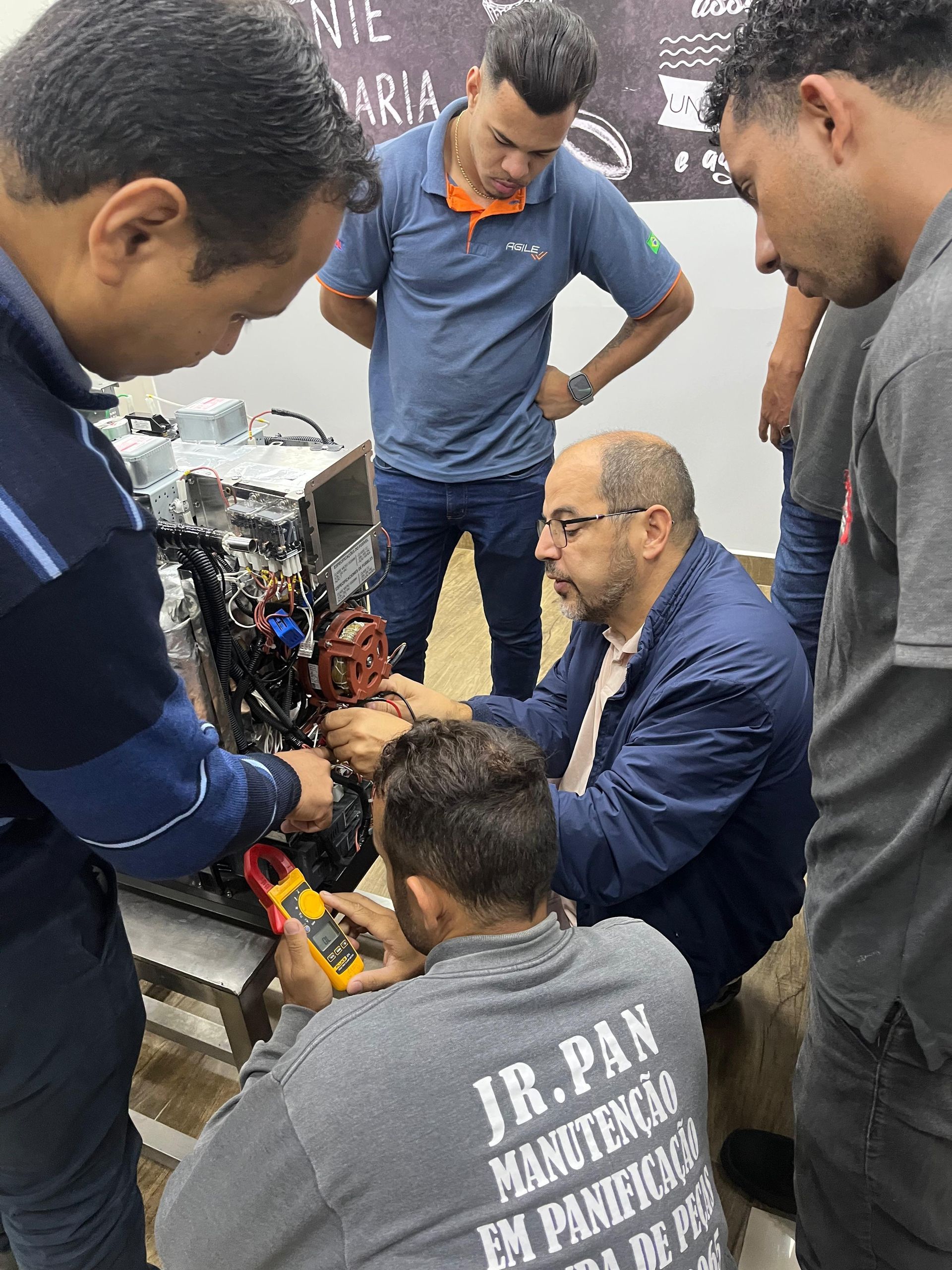 A programação foi conduzida pelo instrutor Leonardo Santos, que apresentou orientações detalhadas sobre procedimentos técnicos, diagnóstico de funcionamento, regulagens e rotinas de manutenção preventiva.